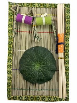 ●棚は台の上に真菰莚(マコモムシロ)を敷き、壇を作ります。 真菰莚のかわりに白い布などでもかまいません。