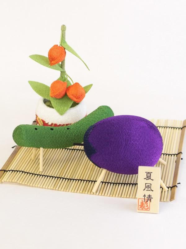 ●おがら(麻の皮をはいだ茎)か割り箸で4本の足をつけた”なす”の牛や”きゅうり”の馬などを飾ります。この動物にご先祖様が乗ってくるということで作られていますが、十三日は内側に向け、十六日にはご先祖様がまた乗って帰るということから外側に向けておきます。